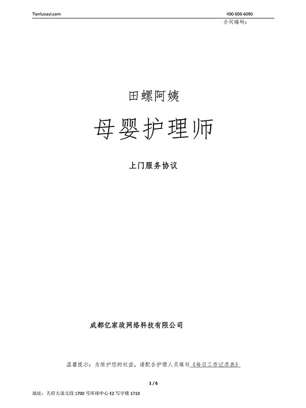 5、簽約服務期不足15天,價格標準按小田螺阿姨300元/天計算,選擇阿姨等級每升一檔每天加收100元;