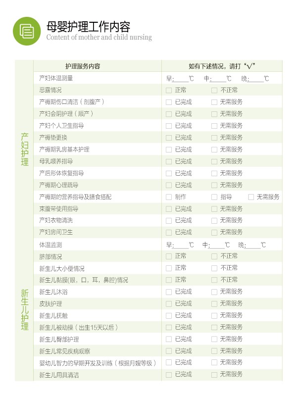 1、月嫂服務內容根據阿姨等級不同會有所增減,關于每個等級月嫂詳細的服務內容可咨詢母嬰顧問。