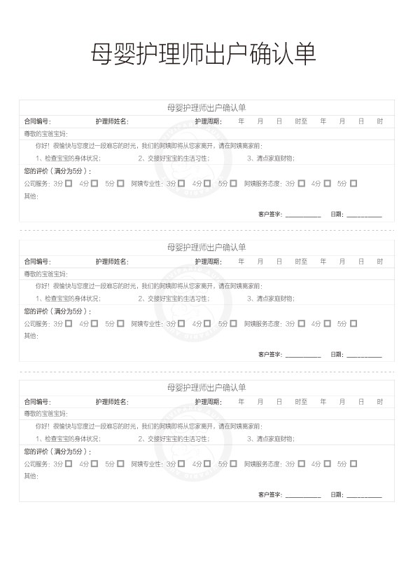 5、育兒嫂每月正常假期為4天,具體休假情況雙方應提前協商或按天補償阿姨相應工資。法定節假日,將以調休相應天數至服務期最后日期(調休)或補償雙倍日薪(補薪),春節3倍工資。