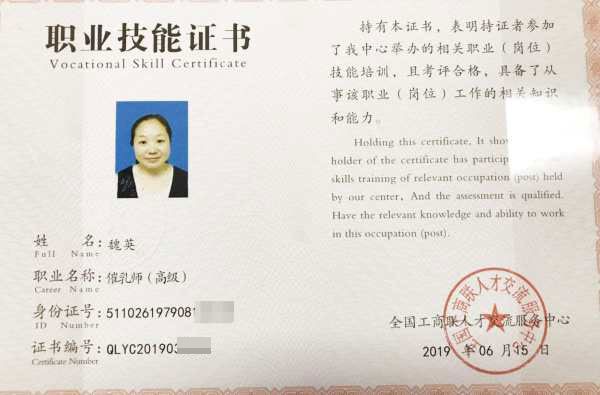 個人資料派出所備案 高級育嬰師證書 高級催乳師證書