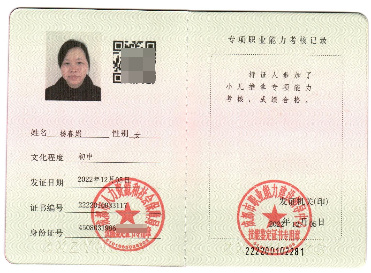 專業技術:五星個人衛生:五星